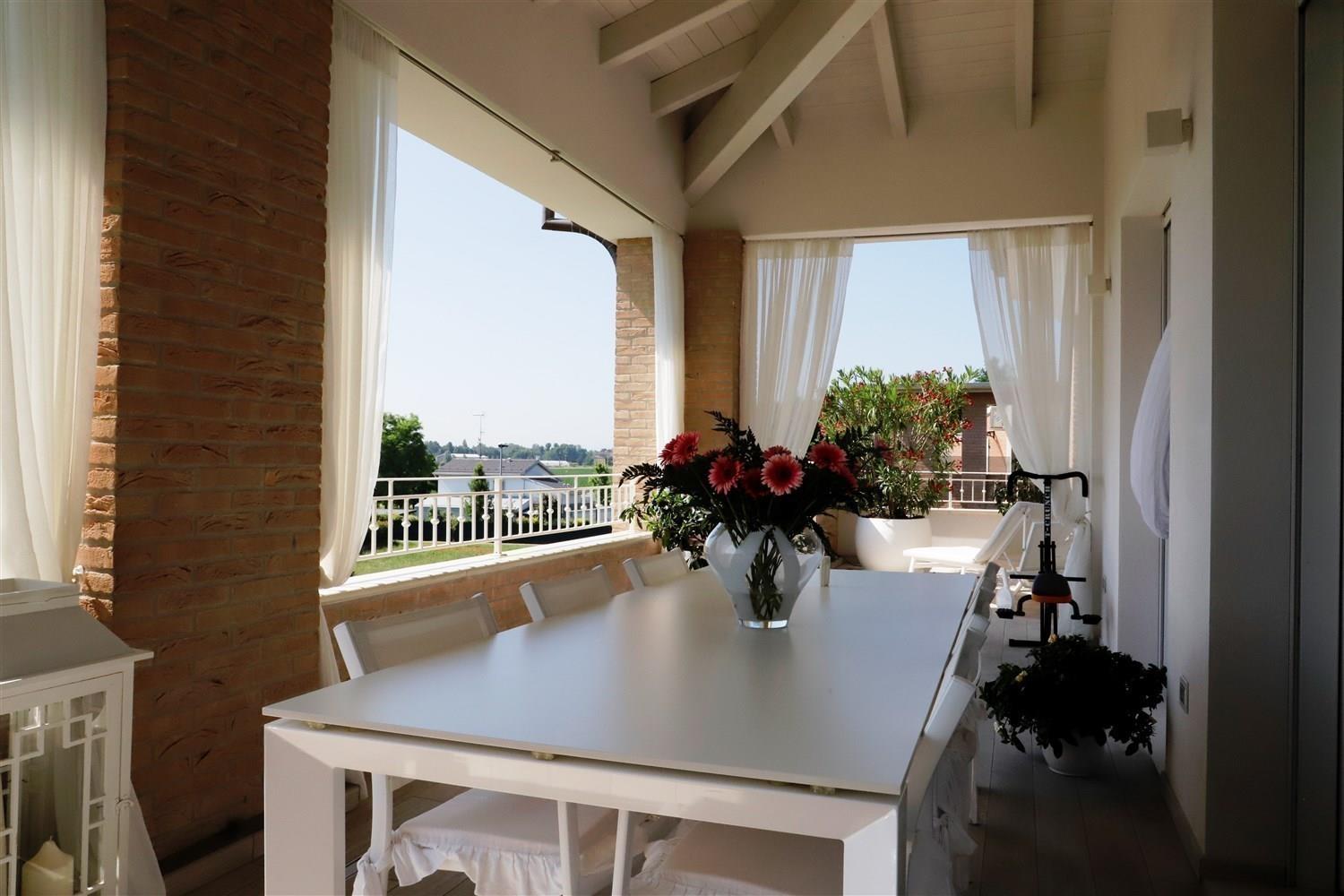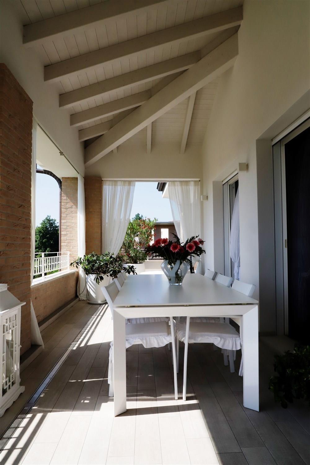 In zona Morbidina di Carpi vendiamo in esclusiva meraviglioso attico in piccola palazzina in pietra faccia vista costruita nel 2015. l'attico ha finiture ricercate, ed è impreziosito da un meraviglioso terrazzo loggiato di 80 mq. La palazzina è servita da ascensore che ha accesso diretto all'abitazione. Si entra così nella luminosa zona giorno composta da soggiorno con cucina abitabile che affacciano sul terrazzo ad oggi attrezzato con tavolo, salotto e angolo barbecue. Un disimpegno con comoda armadiatura a muro su misura accompagna nella zona notte dove troviamo un bagno, due camere da letto matrimoniali, entrambe con affaccio su un secondo terrazzo e di cui una con bagno in camera e stanza armadi. I soffitti sono alti e con travi a vista in legno bianco sbiancate, il riscaldamento è a pavimento e son presenti pannelli solari per le parti comuni. L'attico viene venduto arredato, prezzo e ulteriori informazioni sono disponibili presso i nostri uffici in via C. Marx n. 64. Immobiliare DIERRE 059.69.00.29 info@immobiliaredierre.eu Classe Energetica B (54 kWh/mqa)Cerca il tuo immobile