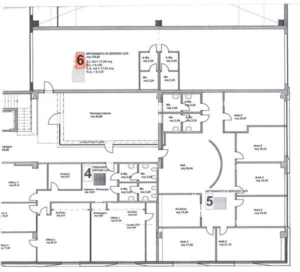 Sud - ingresso, bagno, cinque uffici. € 1.500 Classe Energetica D (228,33 kWh/mca)